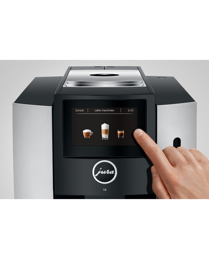 L'écran tactile couleur haute résolution de 4,3 pouces garantit une utilisation simple et confortable : il vous suffit de toucher l'écran du bout du doigt pour savourer votre spécialité préférée dans votre tasse. Cette approche de commande moderne et innovante se distingue par sa clarté. Les éléments graphiques et les animations rendent la navigation parfaitement fluide, présentent toutes les étapes de la préparation et guident l'utilisateur directement vers son objectif. Chacun peut programmer ses préférences personnelles en un clin d'œil. Renommer, déplacer, copier, doubler... toutes ces actions sont réalisées en un instant avec la S8.